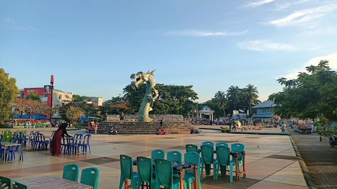 Selain ada alun-alun kota, pantai ini juga memiliki keunikan lainnya. Jika kamu berkunjung ke sini, kamu akan menemui patung Kepala Naga. Naga berwarna hijau ini merupakan simbol kekuatan, kegigihan, dan kejayaan Kerajaan Buton.